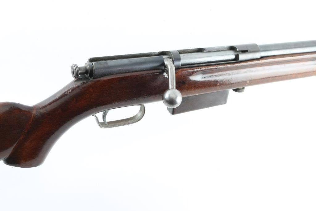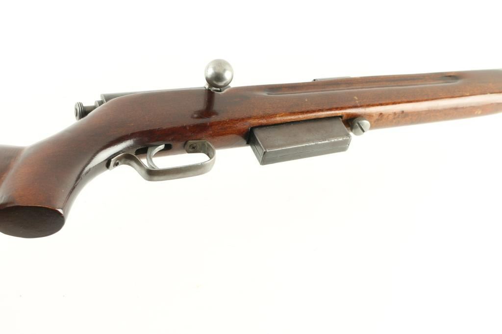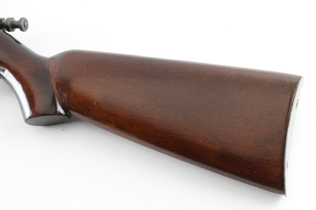GOOD: Some minor replacement parts; metal smoothly rusted or lightly pitted in places, cleaned or re-blued; principal letters, numerals and design on metal legible; wood refinished, scratched bruised or minor cracks repaired; in good working order.