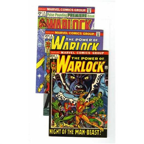<B>Warlock Group (Marvel, 1972-76) Condition: Average VF/NM.</B></I> Includes #1 (origin story by Gil Kane - VF-), 5, #9 (Jim Starlin's second Thanos saga begins, Warlock gets a new costume, Thanos cameo, Starlin cover and art), and 12. Approximate Overstreet value for group = $75. <I> From the Madison Monk Collection.</B></I><BR><BR><b>Shipping:</b> Comics - Unslabbed (<a target="_blank" href="http://www.heritageauctions.com/common/shipping.php">view shipping information</a>)
