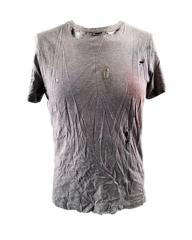 R (Nicholas Hoult) screen worn, hero, very distressed with holes, red 'H&M' hooded sweatshirt, (size L) very distressed with holes and with knife holes, heather grey 'H&M' crew neck t-shirt, (size M) and very distressed blue denim 'Levis' jeans. (size 34 x 34)