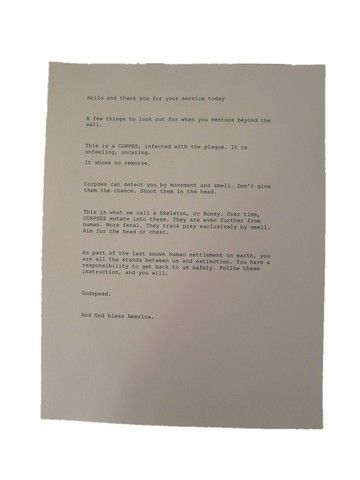 What is a General without speeches? Especially when you are dealing with a world of the undead, and you have a daughter who is in love with one! This is General Grigio's (John Malkovich) screen used, hero, typed out speech from the very dark comedy "Warm Bodies" (2013).