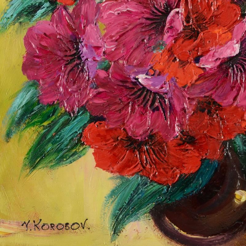 Warm Feelings is an original acrylic painting on canvas by Yana Korobov, hand signed by the artist. Includes Letter of Authenticity. Measures approx. 24" x 24" (image).