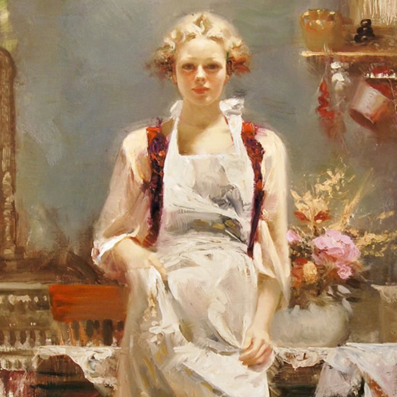 Warm Memories by Pino (1939-2010). "Warm Memories" is an artist embellished limited edition giclee on canvas by Pino (1939-2010), AP Numbered and hand signed by the artist. Includes Certificate of Authenticity. Measures approx. 34" x 44" (image). This piece is not stretched.