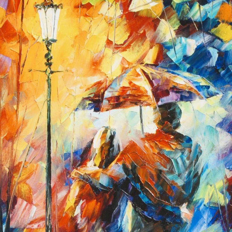 Leonid Afremov's (1955-2019) masterful use of color and texture make his paintings unique collectibles that are sure to brighten any wall. "Warmth" is a limited edition giclee on canvas. The piece is numbered and bears the artist's authorized signature. This piece comes gallery wrapped. Includes Letter of Authenticity. Measures approx. 16" x 27.5" (image). This item requires special handling and may have a longer than usual turnaround.