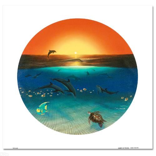 Wyland's true love for nature is so clearly conveyed in each of his brilliantly detailed works. "Warmth of the Sea" is a limited edition giclee on canvas, numbered and hand signed by Wyland! Includes Certificate of Authenticity! Measures approx. 26" x 26" (image).