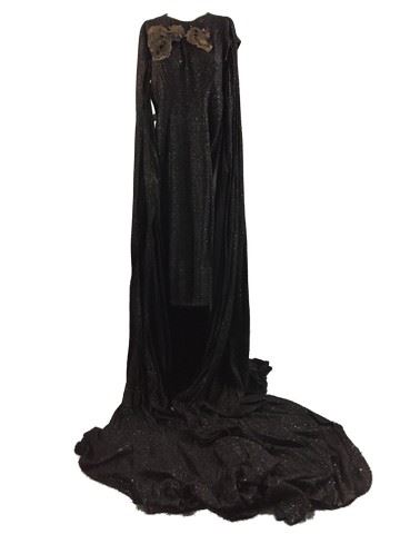 Miscellaneous costume item made by Warner Bros. Cosmic style appearance. Dress is in four parts for the front, back, and sides all attached around the shoulder area (no sizing info available). The front collar has two metal decorative pieces. From the Debbie Reynolds/ Todd Fisher archives collection.