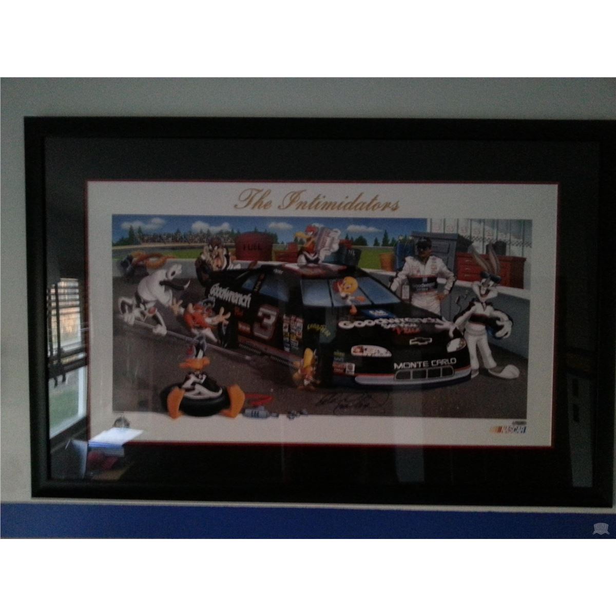 This limited edition photo-animation lithograph entitled "The Intimidators" features the Warner Bros. characters and Dale Earnhart. This piece was one of the last ones signed before Dale's fatal crash. "The Intimidators" was extremely popular and could