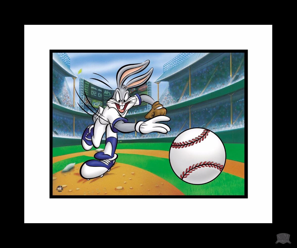 This framed 16x20 lithograph features Bugs Bunny throwing a fast pitch baseball. Limited edition Giclee. Edition Size - 500.Includes WB Hologram and Certificate of Authenticity.Giclée,†as a fine art term, has come to be associated with prints using