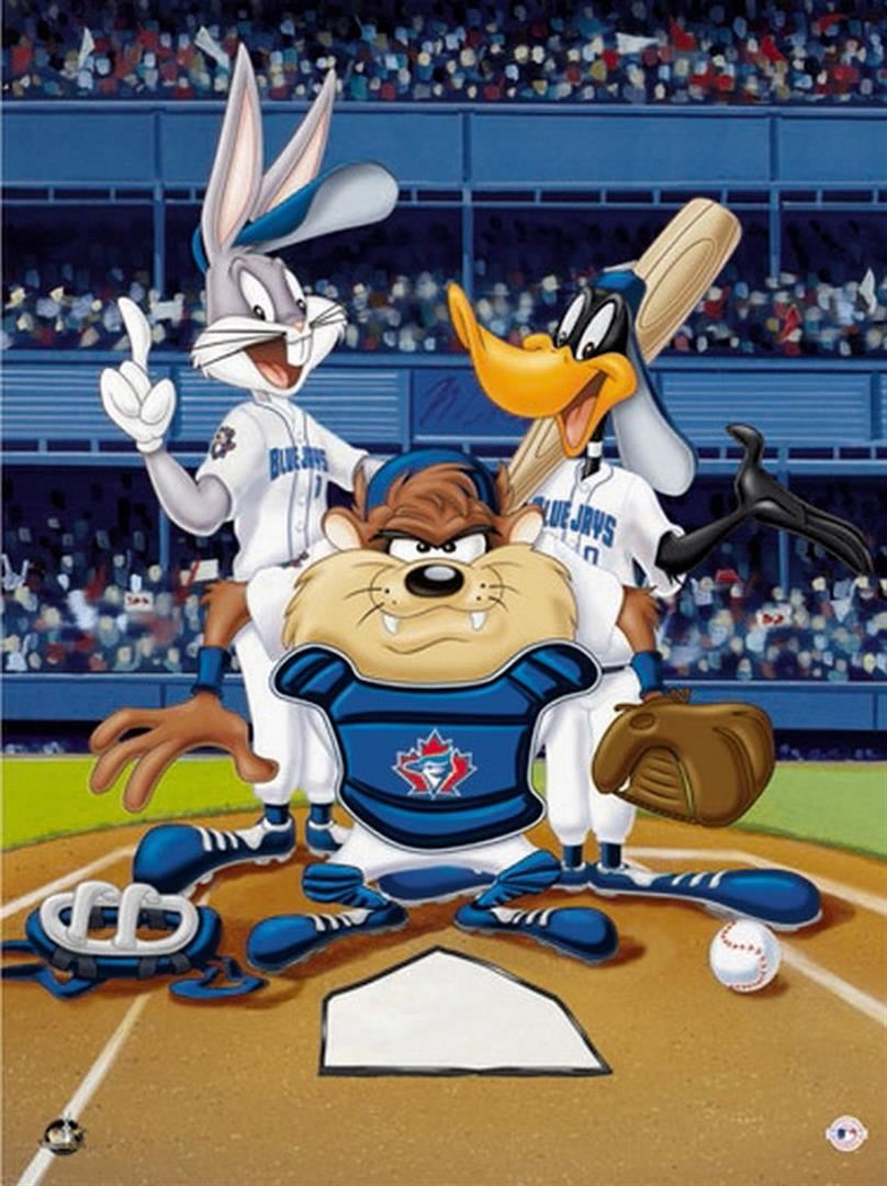 Artist: Warner Brothers) - Title: At the Plate Blue Jays - Medium: Giclee on Fine Art Paper - Signature: Hand-signed by the Artist - Limited Edition: 500 - Image Size: Approximately 16 Inches x 12 inches - Paper Size: Approximately 20 inches x 16 inches - Framed: Unframed - Details: This work comes with a Warner Brothers Hologram for Authenticity - The three Warner Directors were expected to turn out ten six-minute cartoons each year, or one every five weeks! And, each director had his own lead designer, background artist, and a team of animators. Mel Blanc provided the common thread as the man of a thousand voices, and Carl Stalling is most recognized as the Music Director for the majority of the Warner Bros. shorts