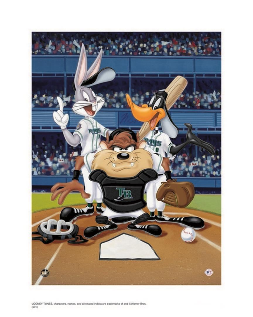 Artist: Warner Brothers - Title: At the Plate Devil Rays - Medium: Giclee on Fine Art Paper - Limited Edition: 500 - Image Size: Approximately 16 Inches x 12 inches - Paper Size: Approximately 20 inches x 16 inches - Framed: Unframed - Details: This work comes with a Warner Brothers Hologram for Authenticity - The three Warner Directors were expected to turn out ten six-minute cartoons each year, or one every five weeks! And, each director had his own lead designer, background artist, and a team of animators. Mel Blanc provided the common thread as the man of a thousand voices, and Carl Stalling is most recognized as the Music Director for the majority of the Warner Bros. shorts