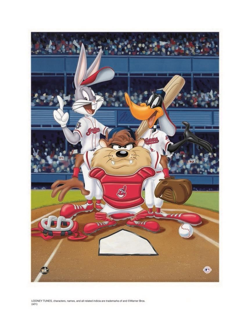 Artist: Warner Brothers) - Title: At the Plate Indians - Medium: Giclee on Fine Art Paper - Signature: Hand-signed by the Artist - Limited Edition: 500 - Image Size: Approximately 16 Inches x 12 inches - Paper Size: Approximately 20 inches x 16 inches - Framed: Unframed - Details: This work comes with a Warner Brothers Hologram for Authenticity - The three Warner Directors were expected to turn out ten six-minute cartoons each year, or one every five weeks! And, each director had his own lead designer, background artist, and a team of animators. Mel Blanc provided the common thread as the man of a thousand voices, and Carl Stalling is most recognized as the Music Director for the majority of the Warner Bros. shorts