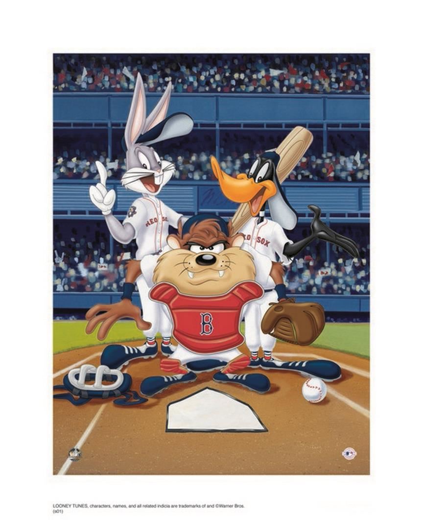 Artist: Warner Brothers) - Title: At the Plate Red Sox - Medium: Giclee on Fine Art Paper - Signature: Hand-signed by the Artist - Limited Edition: 500 - Image Size: Approximately 16 Inches x 12 inches - Paper Size: Approximately 20 inches x 16 inches - Framed: Unframed - Details: This work comes with a Warner Brothers Hologram for Authenticity - The three Warner Directors were expected to turn out ten six-minute cartoons each year, or one every five weeks! And, each director had his own lead designer, background artist, and a team of animators. Mel Blanc provided the common thread as the man of a thousand voices, and Carl Stalling is most recognized as the Music Director for the majority of the Warner Bros. shorts