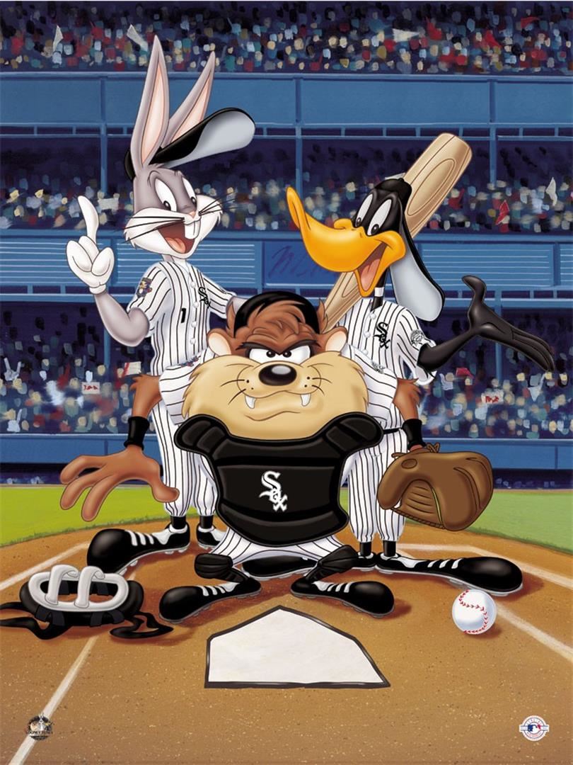 Artist: Warner Brothers - Title: At the Plate White Sox - Medium: Giclee on Fine Art Paper - Limited Edition: 500<br Image Size: Approximately 16 Inches x 12 inches - Paper Size: Approximately 20 inches x 16 inches - Unframed - Details: This work comes with a Warner Brothers Hologram for Authenticity - The three Warner Directors were expected to turn out ten six-minute cartoons each year, or one every five weeks! And, each director had his own lead designer, background artist, and a team of animators. Mel Blanc provided the common thread as the man of a thousand voices, and Carl Stalling is most recognized as the Music Director for the majority of the Warner Bros. shorts