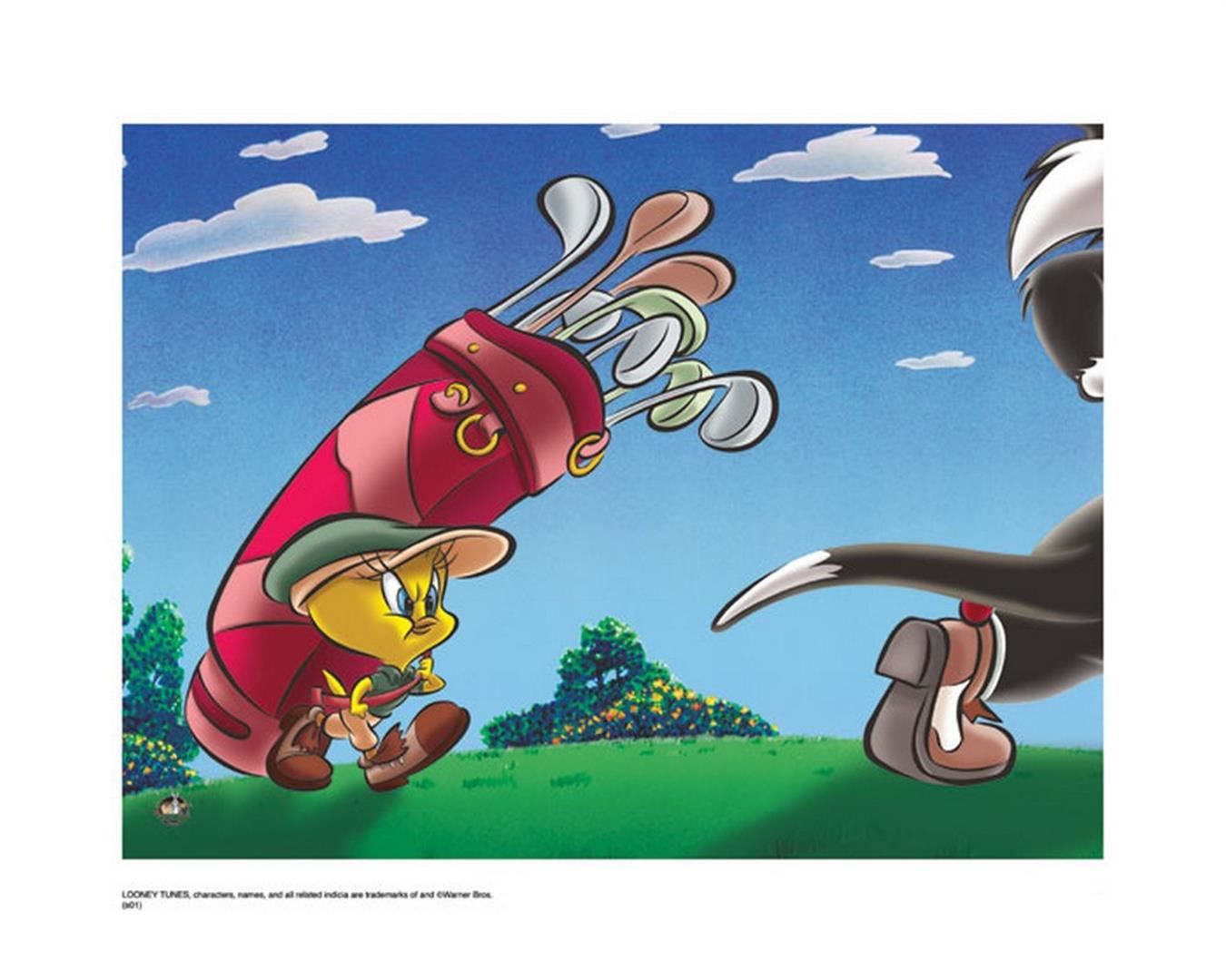 Artist: Warner Brothers - Title: Caddy with T'attitude - Medium: Serigraph on Fine Art Paper - Limited Edition: AP 125 - Image Size: Approximately 16 Inches x 12 inches - Paper Size: Approximately 20 inches x 16 inches - Framed: Unframed - Details: This work comes with a Certificate of Authenticity - Biography: Many are touched by Lucelle's blending of the hopeful innocence of children in a commonplace setting. Each case awakens nostalgia for that youthful honesty and simplicity in all that view her work. The recipient of multiple awards, her most prized award was received at the world famous Washington Square Art Exhibit, an annual event in New York which is an invitational, juried show with over 500 artists from every corner of the globe. Lucelle's art graces many corporate, public, and private collections in every state in the union and in countries around the world. -