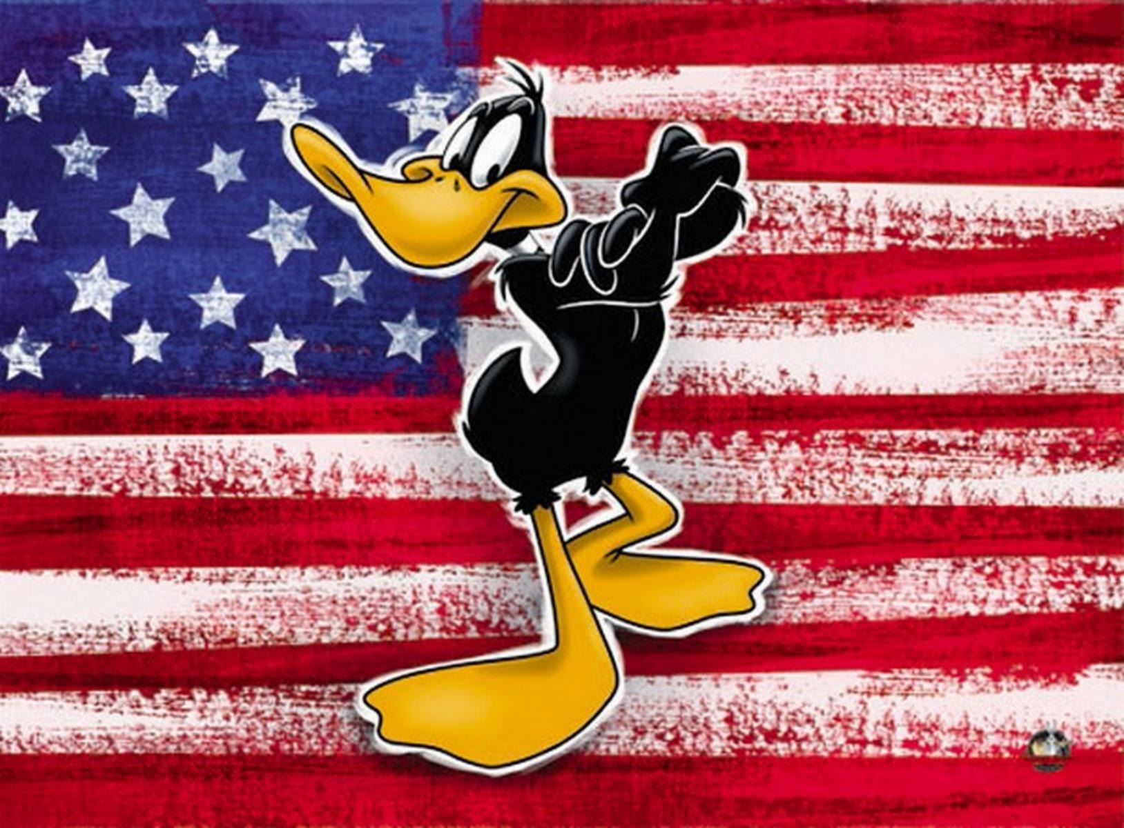 Artist: Warner Brothers - Title: Daffy with Flag - Medium: Giclee on Fine Art Paper - Limited Edition: 500 - Image Size: Approximately 12 Inches x 16 inches - Paper Size: Approximately 16 inches x 20 inches - Framed: Unframed - Details: This work comes with a Warner Brothers Hologram for Authenticity - The three Warner Directors were expected to turn out ten six-minute cartoons each year, or one every five weeks! And, each director had his own lead designer, background artist, and a team of animators. Mel Blanc provided the common thread as the man of a thousand voices, and Carl Stalling is most recognized as the Music Director for the majority of the Warner Bros. shorts