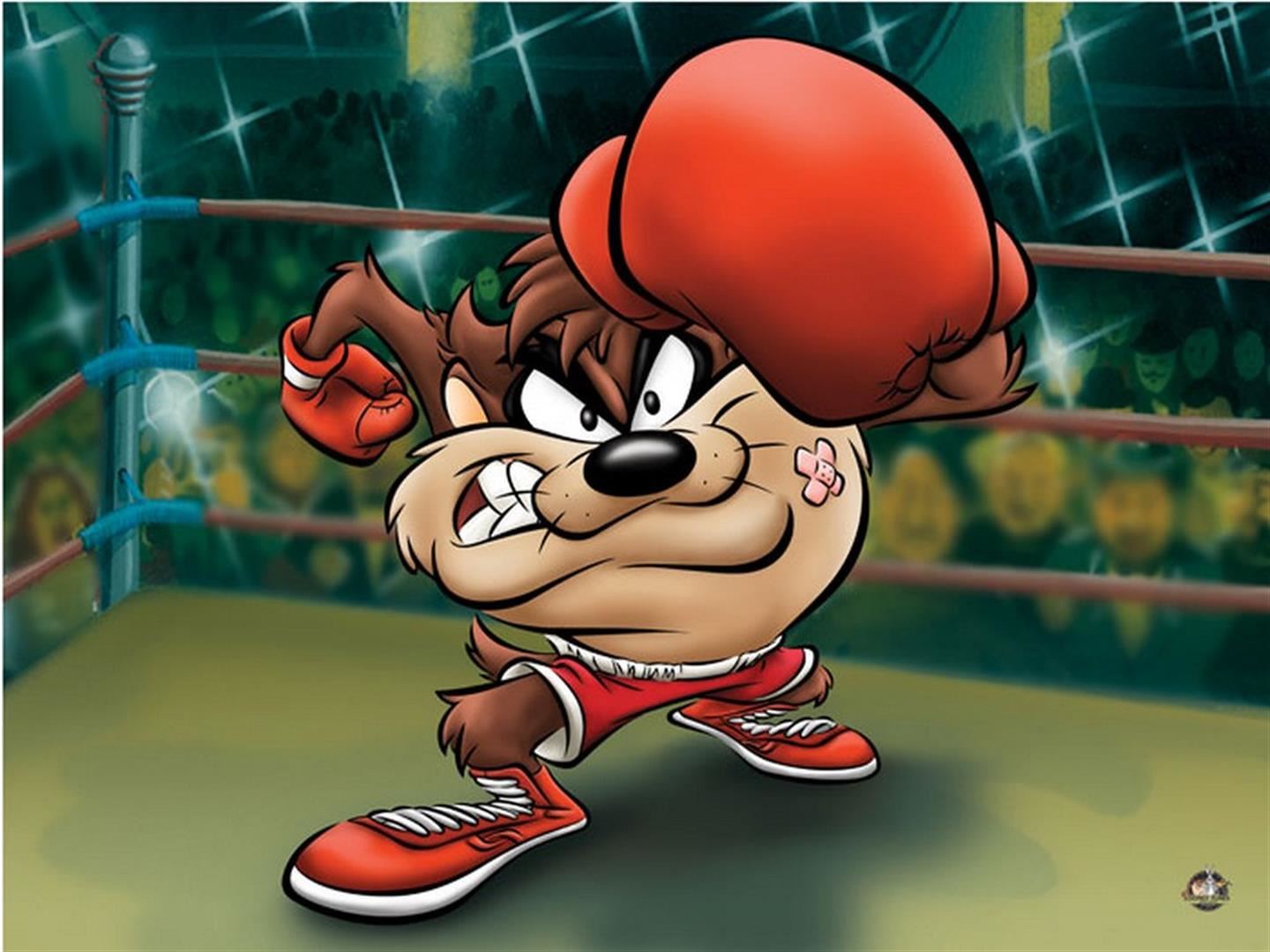 Artist: Warner Brothers - Title: Knock Out Taz - Medium: Giclee on Fine Art Paper - Limited Edition: 500 - Image Size: Approximately 12 Inches x 16 inches - Paper Size: Approximately 16 inches x 20 inches - Framed: Unframed - Details: This work comes with a Warner Brothers Hologram for Authenticity - The three Warner Directors were expected to turn out ten six-minute cartoons each year, or one every five weeks! And, each director had his own lead designer, background artist, and a team of animators. Mel Blanc provided the common thread as the man of a thousand voices, and Carl Stalling is most recognized as the Music Director for the majority of the Warner Bros. shorts