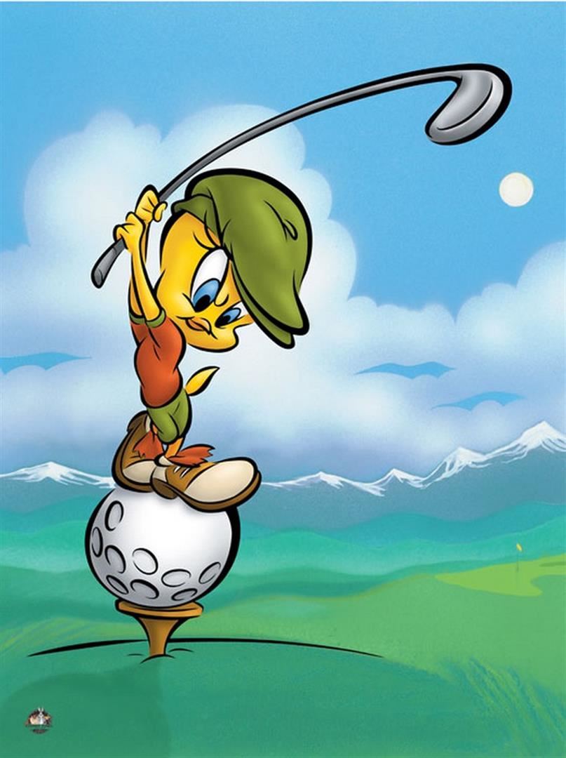 Artist: Warner Brothers - Title: Tee off Tweety - Medium: Giclee on Fine Art Paper - Limited Edition: 500 - Image Size: Approximately 16 Inches x 12 inches - Paper Size: Approximately 20 inches x 16 inches - Framed: Unframed - Details: This work comes with a Warner Brothers Hologram for Authenticity - The three Warner Directors were expected to turn out ten six-minute cartoons each year, or one every five weeks! And, each director had his own lead designer, background artist, and a team of animators. Mel Blanc provided the common thread as the man of a thousand voices, and Carl Stalling is most recognized as the Music Director for the majority of the Warner Bros. shorts