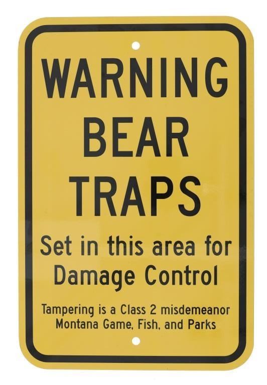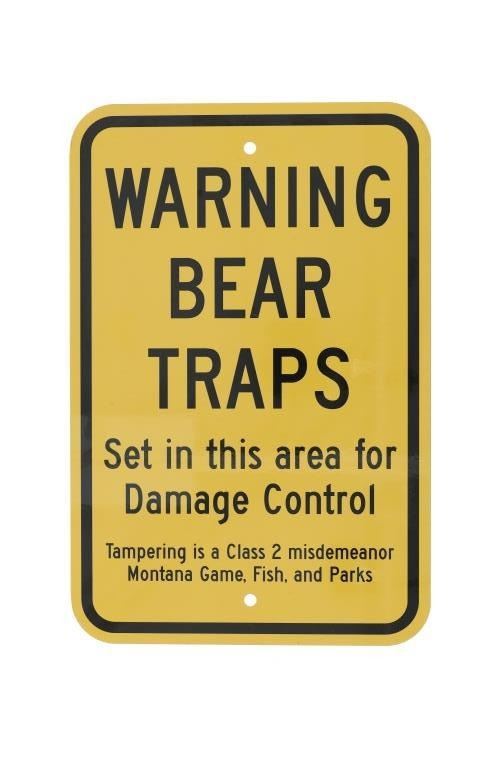 Warning Bear Trap Montana Game, Fish, & Parks Sign