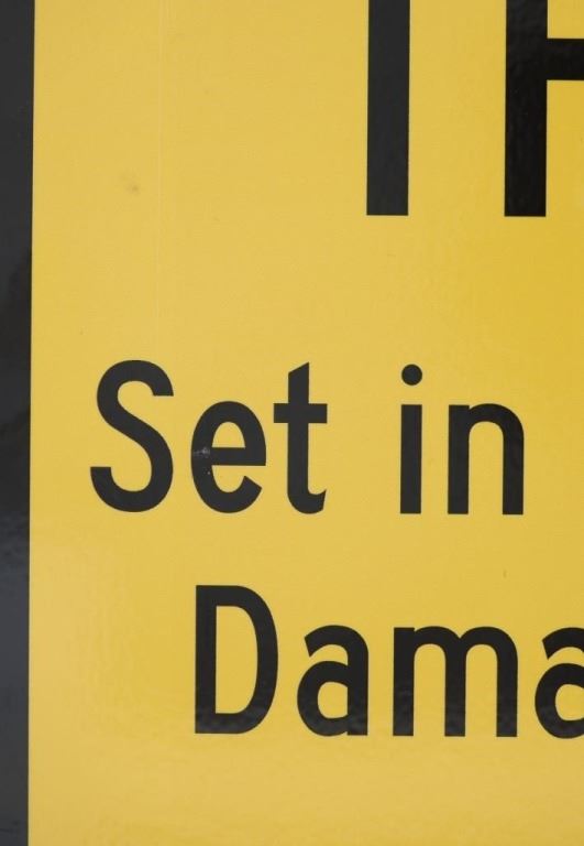 Featured in this lot is a Warning Bear Traps Montana Game, Fish, and Parks sign. The sign features a wonderfully and professionally crafted metal construction that shows a yellow field with black lettering that reads as follows: Warning Bear Traps Set in this area for Damage Control - Tampering is a Class 2 misdemeanor - Montana Game, Fish, and Parks. The condition of this sign is good with no obvious signs of damage and shows good overall condition. The measurements of this sign are 18" x 12".