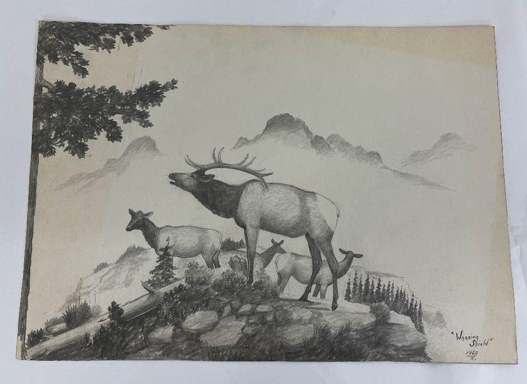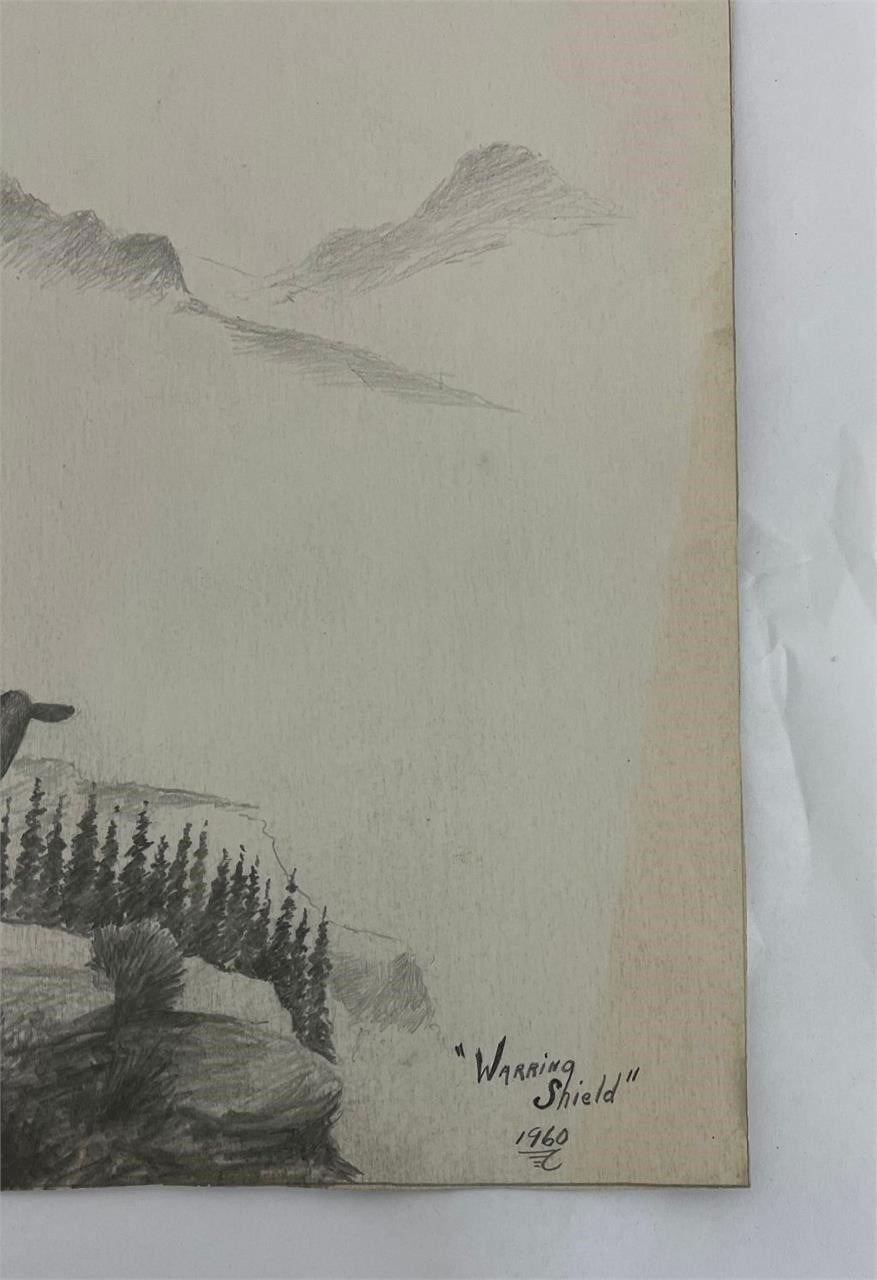 12.5" by 17.5" unframed. Montana Indian Artist Warning Shield.