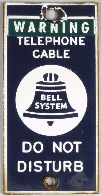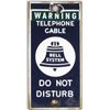Warning Telephone Cable Porcelain Sign. Chip around top grommet otherwise good condition. 3 1/2 X 7 inches.