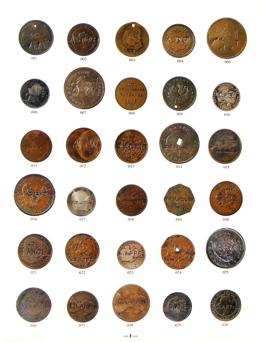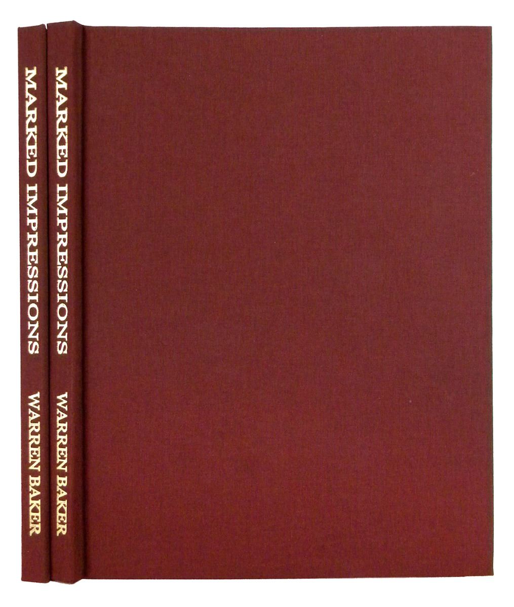 Baker, Warren. MARKED IMPRESSIONS: A CATALOGUE OF THE JOSEPH FOSTER COLLECTION OF 19TH CENTURY CANADIAN COUNTERMARKED COINS. Montreal, 2006. Two volumes (text and plate folder). 4to, original matching maroon cloth, gilt. (2), x, 148 pages; 33 very high quality 8.5 by 11 inch color photographs depicting 900 countermarks. Numbered and signed by the author. Correspondence from the author during preparation of the work included. Fine. See catalogue for full description.