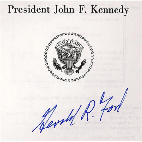 <Our item number 141046><B>Ford, Gerald R.</B> (1913-2006) 38th President of the United States (1974-77). Hardbound book signed with a blue felt-tip pen on the title page, being <I>The Warren Commission Report. The Official Report of the President's Commission on the Assassination of President John F. Kennedy</I> (1993 reprint from the 1964 report), 888pp. Fine. The dust jacket has a few tiny edge tears. <BR>Estimated Value $200 - 250. <BR><BR>Our item number 141046<BR><IMAGES><P ALIGN="CENTER"><IMG SRC="http://www.goldbergcoins.net/liveauction/49jpegs/141046.jpg"> </P></IMAGES>
