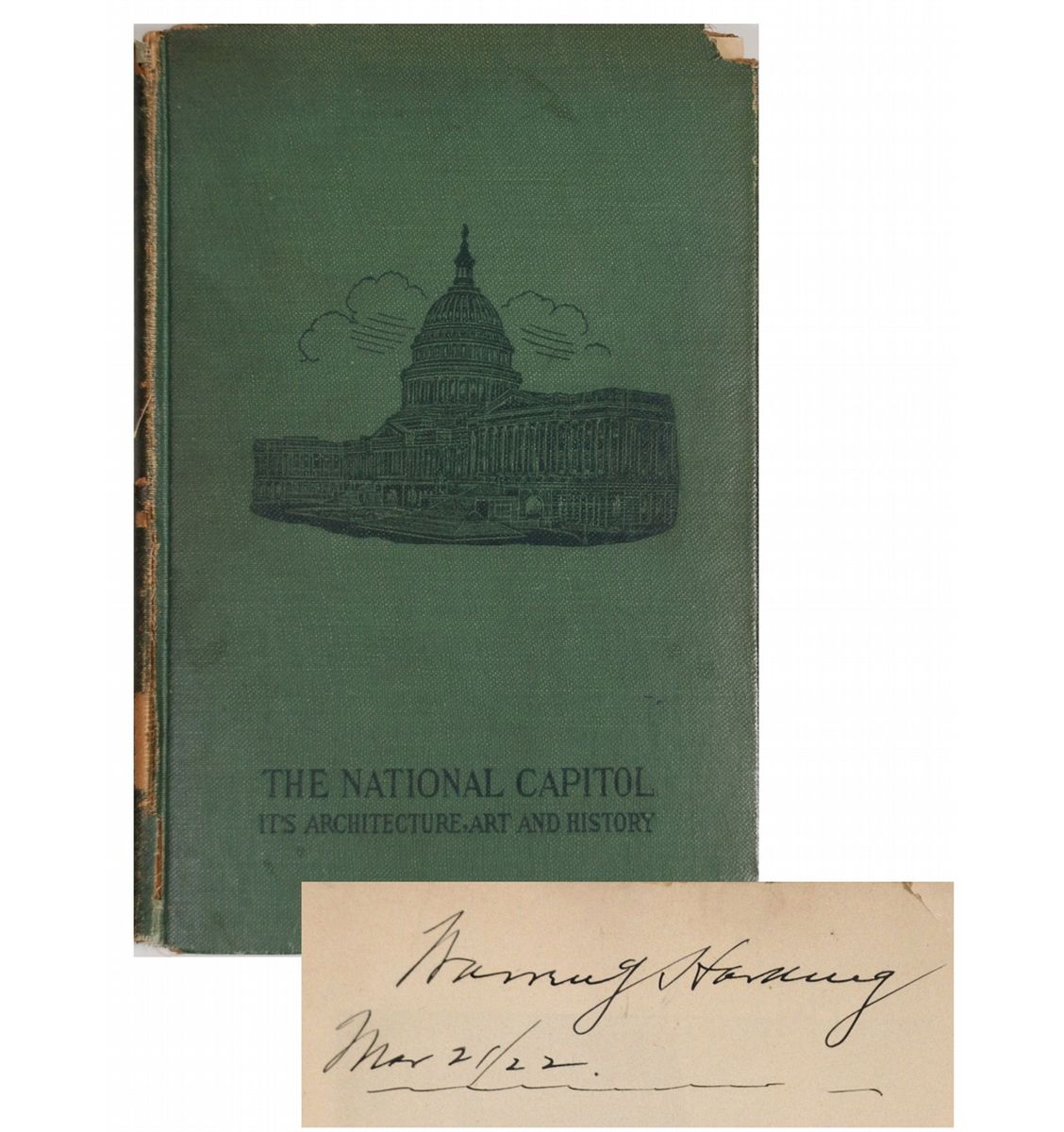 Rare Warren G. Harding signed book “The National Capitol: Its Architecture, Art, and History” signed as President and dated Mar 21/22.Harding is quite scarce in signed books.Book is in good condition although missing part of front right corner, small rip on front end flyleaf. Signature is dark and bold.