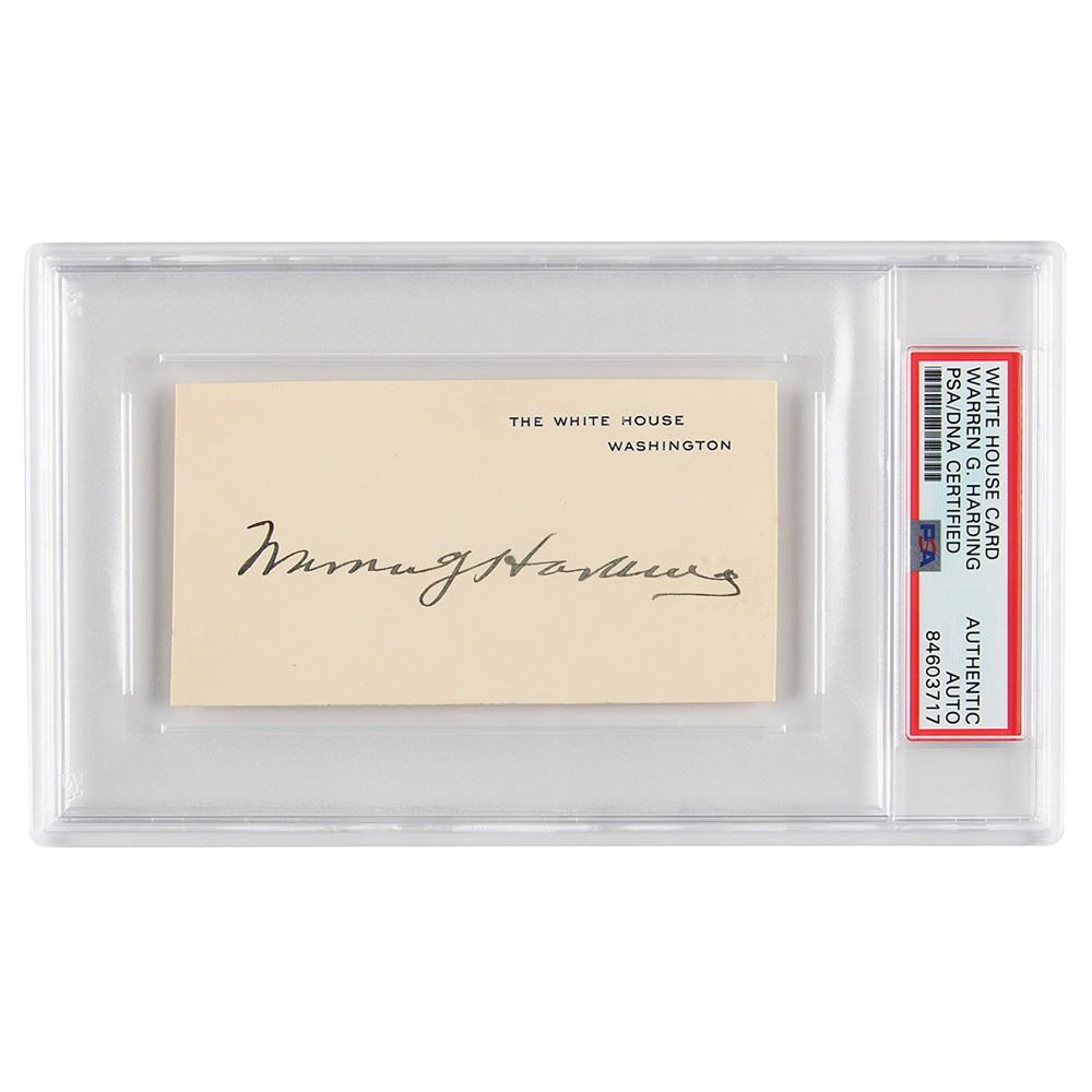White House card, 4.25 x 2.25, signed neatly in fountain pen by Warren G. Harding. In very fine condition. Encapsulated in a PSA/DNA authentication holder.