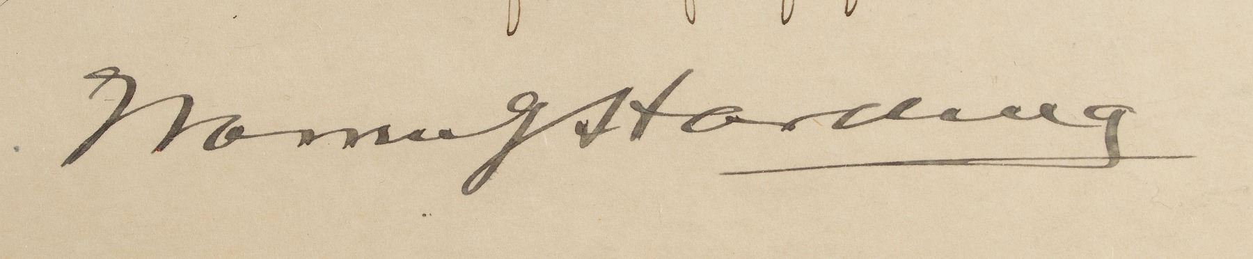 DS as president, one page, 20 x 16, March 16, 1921. President Harding appoints Roger C. Heimer as a "Second Lieutenant of Engineers in the Coast Guard of the United States." Signed boldly at the conclusion by Warren G. Harding, and countersigned by Secretary of the Treasury Andrew W. Mellon. Lower left corner bears the golden Treasury Department seal. In very good to fine condition, with scattered light creasing and soiling, and a fold across the bottom edge.