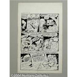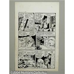 <B>Warren Kremer (attributed) and Abe Simon (attributed) - Witches Tales #13 Complete 5-page Story "Death Lies Ahead" Original Art (Harvey, 1952).</B></I> Here is one of the creepiest yarns you'll ever want to read, and to think it's been attributed to that King of cute, Warren Kremer -- shocking! A cadaverous brother and sister team become prophets of horror and make a pact with the Devil to commit murder. Each page spotlights surreal characters and expressionistic storytelling. Stabbings, stranglings, and immolation are par for the course in this pre-code chiller. The image area is 12" x 18" and the art is in Excellent condition. Pre-code horror fans will certainly want to place strong bids on this offering! <BR><BR><B>Important notice:</B> Heritage usually auctions material at the rate of 200-250 lots per hour. On some occasions eBay Live bid software or the Internet may not be able to keep up with the pace of the auction. We recommend placing a realistic absentee bid now as insurance to avoid disappointment. Occasionally the auctioneer may eliminate or reject an eBay Live bid, and the auctioneer may also reopen a lot after the close of the eBay live bidding (usually because we missed an audience bid), and may reject your bid even if it shows you as the winning bidder. By bidding via eBay Live, you agree that Heritage may award the lot to another bidder at its sole discretion under the circumstances described above or any other reasonable circumstances. Since eBay bids are not shown to us until we open the lot on the floor, we treat those bids just like floor bids. In most cases the floor responds before the eBay bid is presented to us, due to Internet lag time, so for consistency we have made it a policy that floor bids are always considered first over tie eBay live bids. Also please note that all Heritage lots purchased through eBay Live carry a 20% Buyer's Premium. Please make sure you read the Terms and Conditions before you bid.