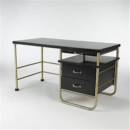 Warren McArthur<BR>desk, model #1541-2<BR>Warren McArthur Corporation<BR>USA, c. 1930<BR>aluminum, lacquered wood<BR>48"w x 24"d x 26"h<BR>Literature: Warren McArthur Corporation, Donnelly, pg. 47<BR><BR><BR><BR><BR>
