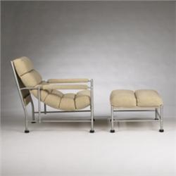 Warren McArthur lounge chair and ottoman, model No. 1002 and 1061 Warren McArthur Corporation USA, 1930s aluminum, rubber, upholstery 28"w x 36"d x 34"h