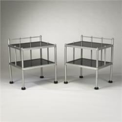 Warren McArthur nightstands, pair Warren McArthur Corporation USA, 1930s anodized aluminum, lacquered wood, rubber 21.25"w x 17.5"d x 25.5"h