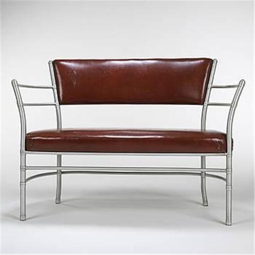Warren McArthur<BR>settee, model #947<BR>Warren McArthur Corporation<BR>USA, c. 1934<BR>aluminum, vinyl<BR>44"w x 25"d x 34"h<BR><BR><BR><BR><BR><BR>