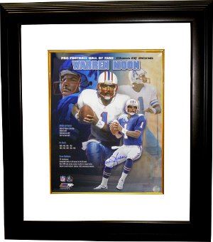 Warren Moon is one of only two people to be enshrined in both the Pro Football Hall of Fame and Canadian Football Hall of Fame. Moon held the record for most passing yardage in professional football until 2006. Warren Moon has hand autographed this Houston Oilers Hall of Fame 16x20 Collage Photo. Custom White Mat and Black Frame as shown. GTSM hologram and Certificate of Authenticity from Athlon Sports.