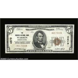 Warren, PA - $5 1929 Ty. 1 The Warren NB Ch. # 4879An unusually high grade example from here. About