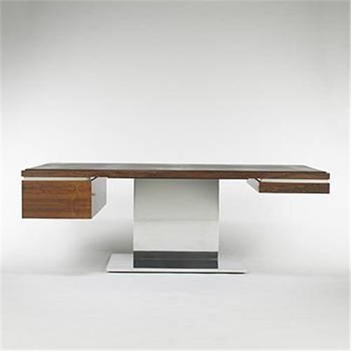 Warren Platner<BR>executive desk<BR>Lehigh Leopold<BR>USA, c. 1965<BR>rosewood, steel, forged aluminum<BR>96"w x 40"d x 30"h<BR>Literature: Ten by Warren Platner, Stoller, ppg. 110-111 illustrate similar example<BR><BR><BR><BR><BR>