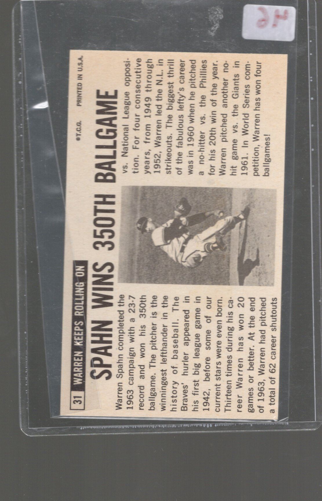 Warren Spahn 1964 Topps Giants. Fantastic Condition for a 64'