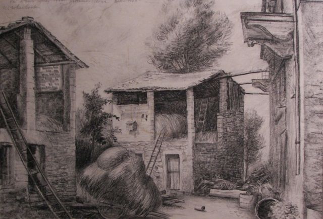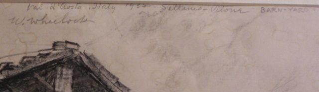 Warren Wheelock, Original charcoal drawing, " Val 'd ' Costa, Italy 1935", 11" x 16" sight, Pencil Signed Top Left, (8007-B)