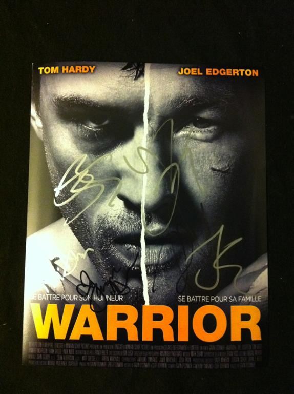 8 x 10 color promo photo for Warrior, signed by stars Tom Hardy, Joel Edgerton, Jennifer Morrison, Kevin Dunn, Frank Grillo, Bryan Cullen.