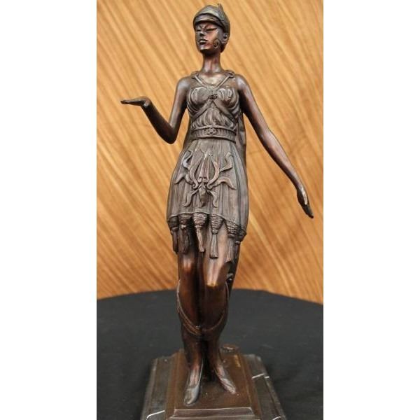 An Roman Female warrior stands boldly, staring her enemy in the eye. She comes from a supernatural world and fights the immortal creatures that ravage it. She is Dressed in an exquisite dress . She wears a suit that clings to her curves. She is 100% bronze and handmade, this Brown patina sculpture was cast using the Lost Wax Method and mounted on a marble base. Bronze Dimensions with Marble Base: Height 19 X Width 10. Weight: 14 LBS. Please Note: This is a reproduction bronze sculpture from the original molded and signed. This featured bronze sculpture is a recast after the original, and has been done recently. This 100% bronze sculpture is an abstract piece certain to be a conversation piece.Please Note: This is a reproduction bronze sculpture from the original molded and signed. This featured bronze sculpture is a recast after the original, and has been done recently. This 100% bronze sculpture is an abstract piece certain to be a conversation piece.