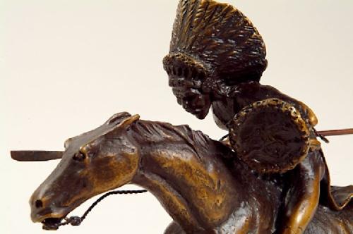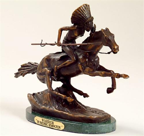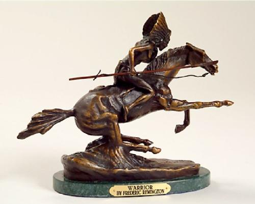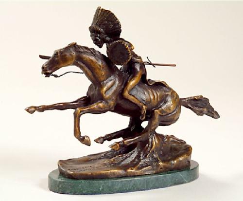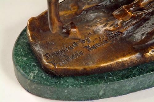 Remington, Frederic (American 1861 - 1909) After, sits on a green marble base, 11 1/2" by 13" by 5"