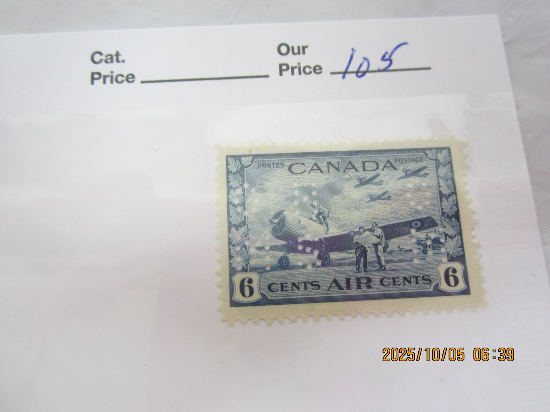 Wartime Canadian 6 Cent Airmail Perforated with Stamp OHMS MNH OG Never Used