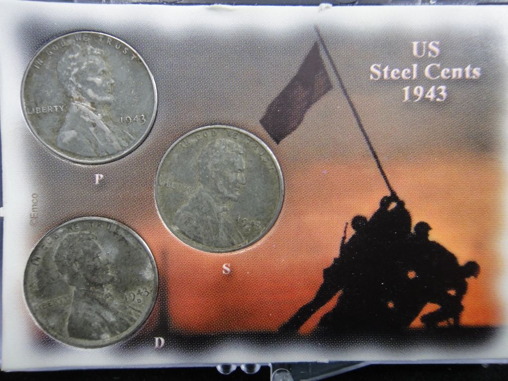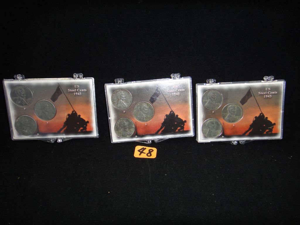 Each set contains the 3 different wartime penny dates / mint marks. 9 Steel Wheat Pennies Total.