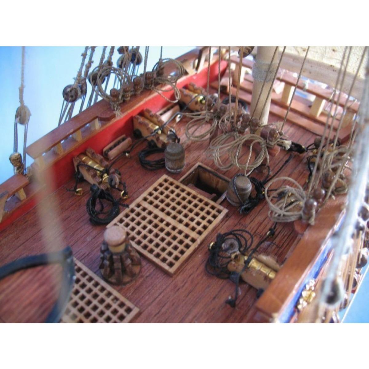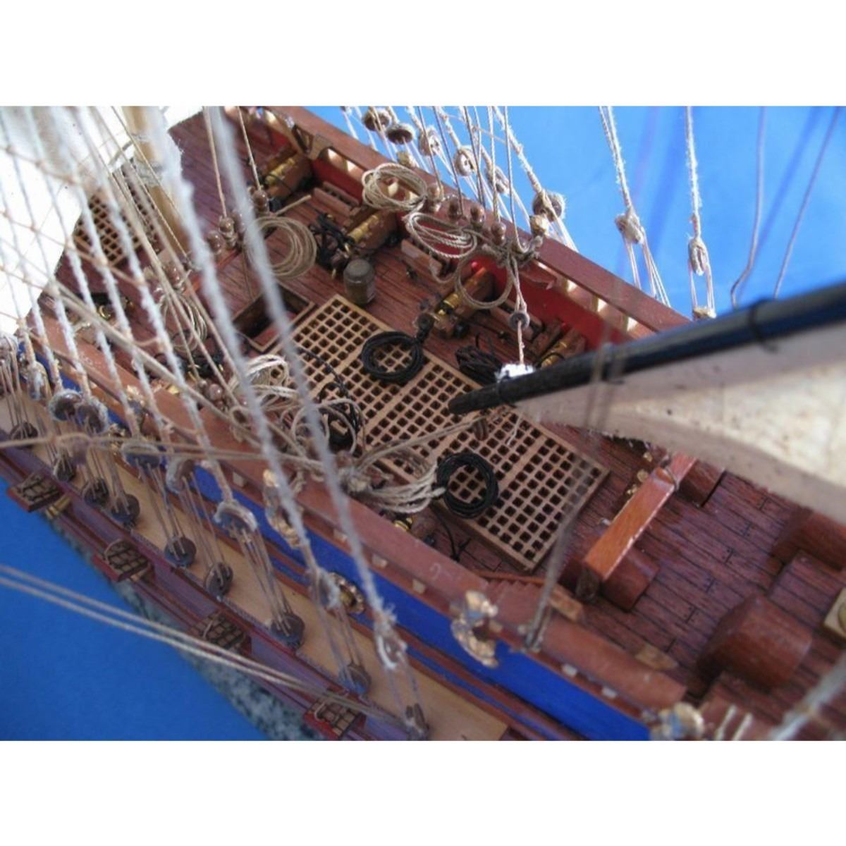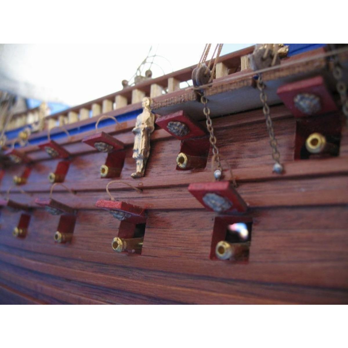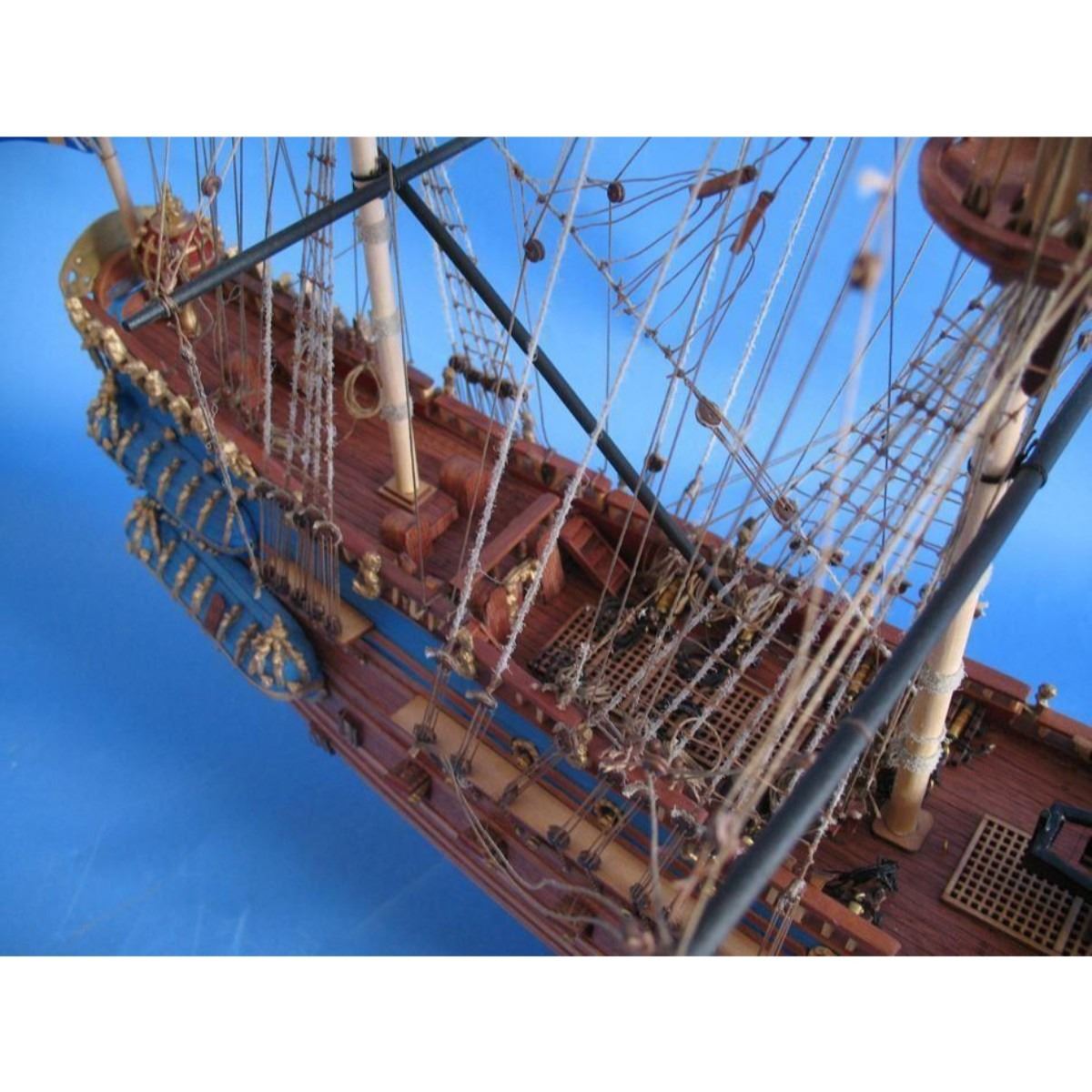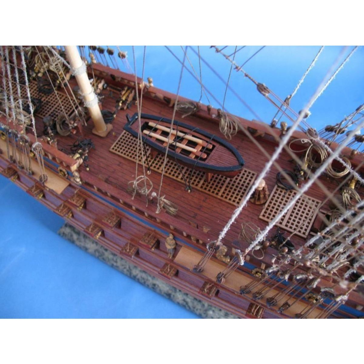 Wasa Limited Tall Model Ship 32" SOLD FULLY ASSEMBLED Ready for Immediate Display - Not a Model Ship kit Historically accurate features bedeck these museum-quality Limited Edition scale replica tall ship models of the Wasa (or Vasa), which are built with the finest craftsmanship and attention to detail. As the grandest warship in the fleet of Swedish King Gustavus Adolphus and built according to his personal specifications, this fighting tall ship of the line salvaged and now displayed as a modern museum ship occupies a distinguished place in Swedish naval history. Now her Limited Edition tall ships model may similarly occupy a proud position in your office, home or meeting room from which to display her exquisite beauty. 32" Long x 9" Wide x 28" High (1:85 scale) Built from scratch over hundreds of hours by master artisans Accurate scale replica tall ship models of the Wasa Museum Quality features not available in other tall ship models under $3,000 or any kit Over 1,000 individual hull pieces, with more than 100 carved adornments Detailed scrollwork, carvings, beakhead and railed quarter balconies with hand-painting Historically correct sails Extensive rigging with hundreds of single, double and triple deadeyes Realistic lifeboats with oars and numerous other deck features Numerous additional deck details such as cannon balls, barrels, rope coils, cleats, etc. Individual wooden planks used in plank-on-frame hull construction High quality woods include walnut, cherry, birch, teak and rosewood Gun ports actually cut into the hull Amazing Details, including: Planked deck with nail holes Authentic scale lifeboats with oars Curved wooden staircases ascend aftcastle and forecastle Numerous individual cannon arm the ship Solid brass cannon fire through actual gun ports Cannonball racks, buckets, barrels, rope coils and other nautical items adorn decks Lattice grates, rudder chains, wooden ladders and planked steps Metal anchors on thick hawsers Masterfully stitched, heavy canvas sails hold shape and do not wrinkle Taut rigging with varied thread gauge and color Cloth flags fly from masts and rigging Limited production run Wooden display base features four arched dolphins Pictured with marble base (available for purchase) Extensive research of original plans, historical drawings and paintings as well as actual photographs ensures the highest possible accuracy Technical Specifications True Museum Quality! This 4 foot long Wasa model stands out above all others in beauty and craftsmanship. Add this impressive historic ship to your life today! Fully Assembled Only 1 available!!