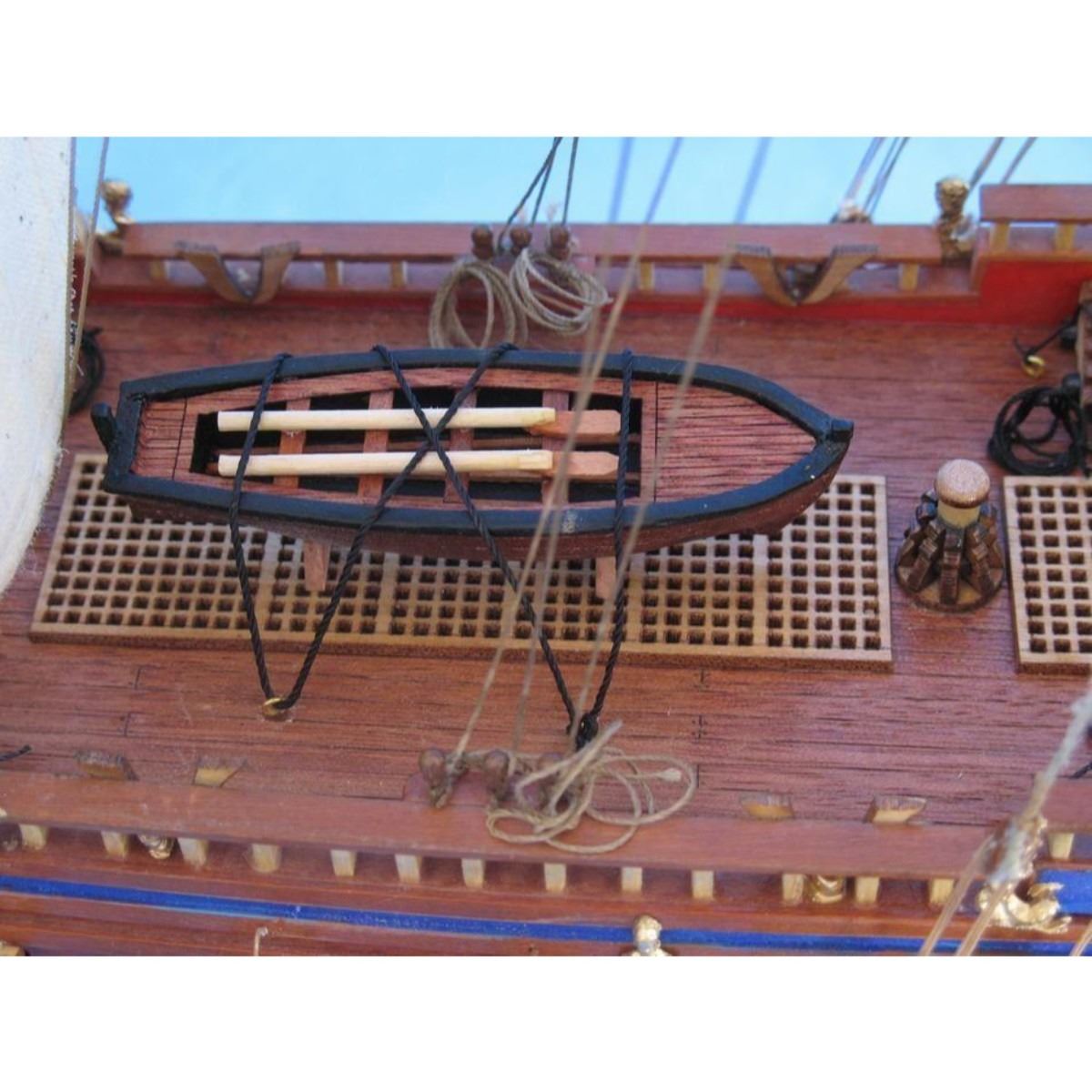 Wasa Limited Tall Model Ship 32" SOLD FULLY ASSEMBLED Ready for Immediate Display - Not a Model Ship kit Historically accurate features bedeck these museum-quality Limited Edition scale replica tall ship models of the Wasa (or Vasa), which are built with the finest craftsmanship and attention to detail. As the grandest warship in the fleet of Swedish King Gustavus Adolphus and built according to his personal specifications, this fighting tall ship of the line salvaged and now displayed as a modern museum ship occupies a distinguished place in Swedish naval history. Now her Limited Edition tall ships model may similarly occupy a proud position in your office, home or meeting room from which to display her exquisite beauty. 32" Long x 9" Wide x 28" High (1:85 scale) Built from scratch over hundreds of hours by master artisans Accurate scale replica tall ship models of the Wasa Museum Quality features not available in other tall ship models under $3,000 or any kit Over 1,000 individual hull pieces, with more than 100 carved adornments Detailed scrollwork, carvings, beakhead and railed quarter balconies with hand-painting Historically correct sails Extensive rigging with hundreds of single, double and triple deadeyes Realistic lifeboats with oars and numerous other deck features Numerous additional deck details such as cannon balls, barrels, rope coils, cleats, etc. Individual wooden planks used in plank-on-frame hull construction High quality woods include walnut, cherry, birch, teak and rosewood Gun ports actually cut into the hull Amazing Details, including: Planked deck with nail holes Authentic scale lifeboats with oars Curved wooden staircases ascend aftcastle and forecastle Numerous individual cannon arm the ship Solid brass cannon fire through actual gun ports Cannonball racks, buckets, barrels, rope coils and other nautical items adorn decks Lattice grates, rudder chains, wooden ladders and planked steps Metal anchors on thick hawsers Masterfully stitched, heavy canvas sails hold shape and do not wrinkle Taut rigging with varied thread gauge and color Cloth flags fly from masts and rigging Limited production run Wooden display base features four arched dolphins Pictured with marble base (available for purchase) Extensive research of original plans, historical drawings and paintings as well as actual photographs ensures the highest possible accuracy Technical Specifications True Museum Quality! This 4 foot long Wasa model stands out above all others in beauty and craftsmanship. Add this impressive historic ship to your life today! Fully Assembled Only 1 available!!