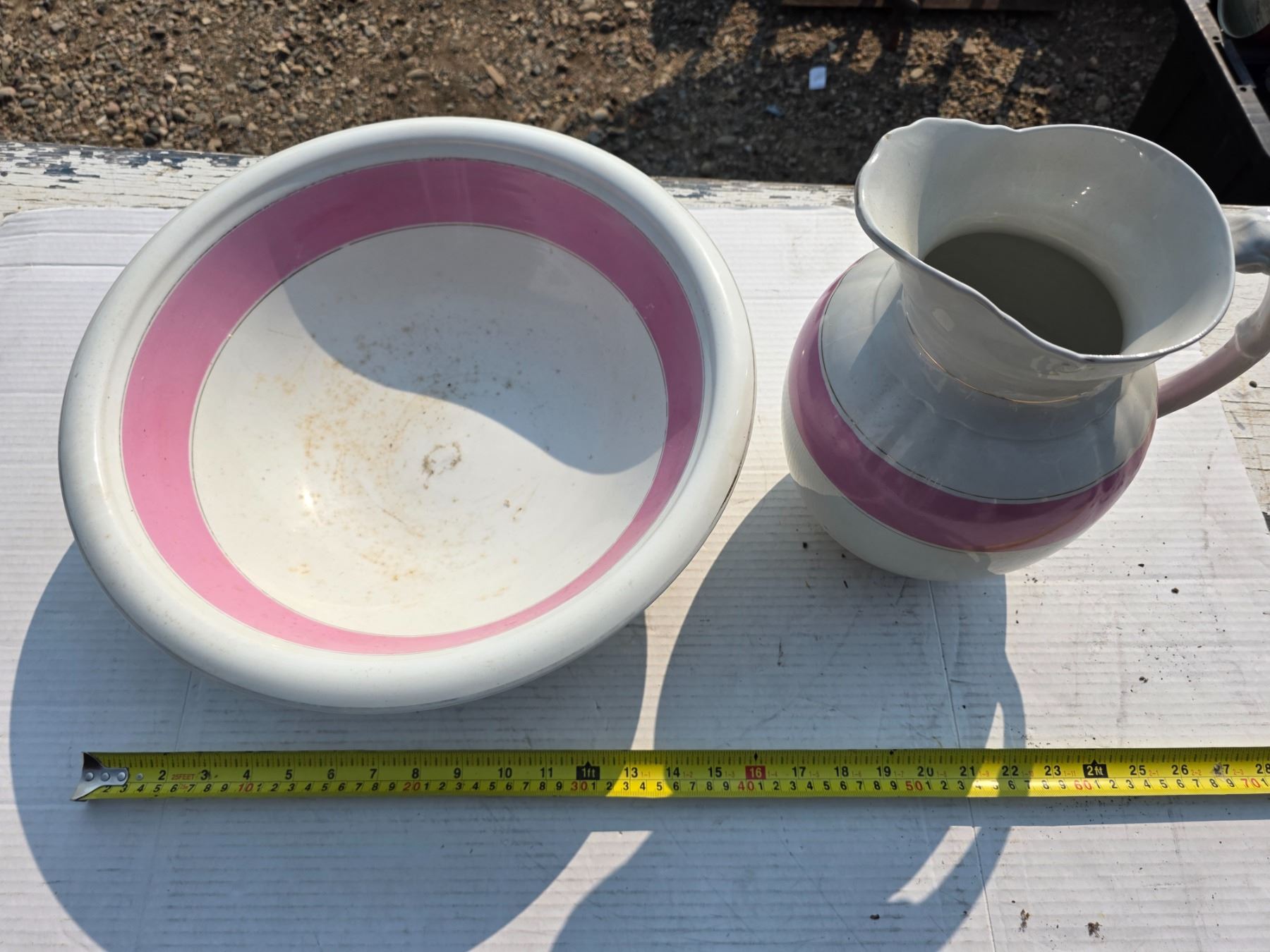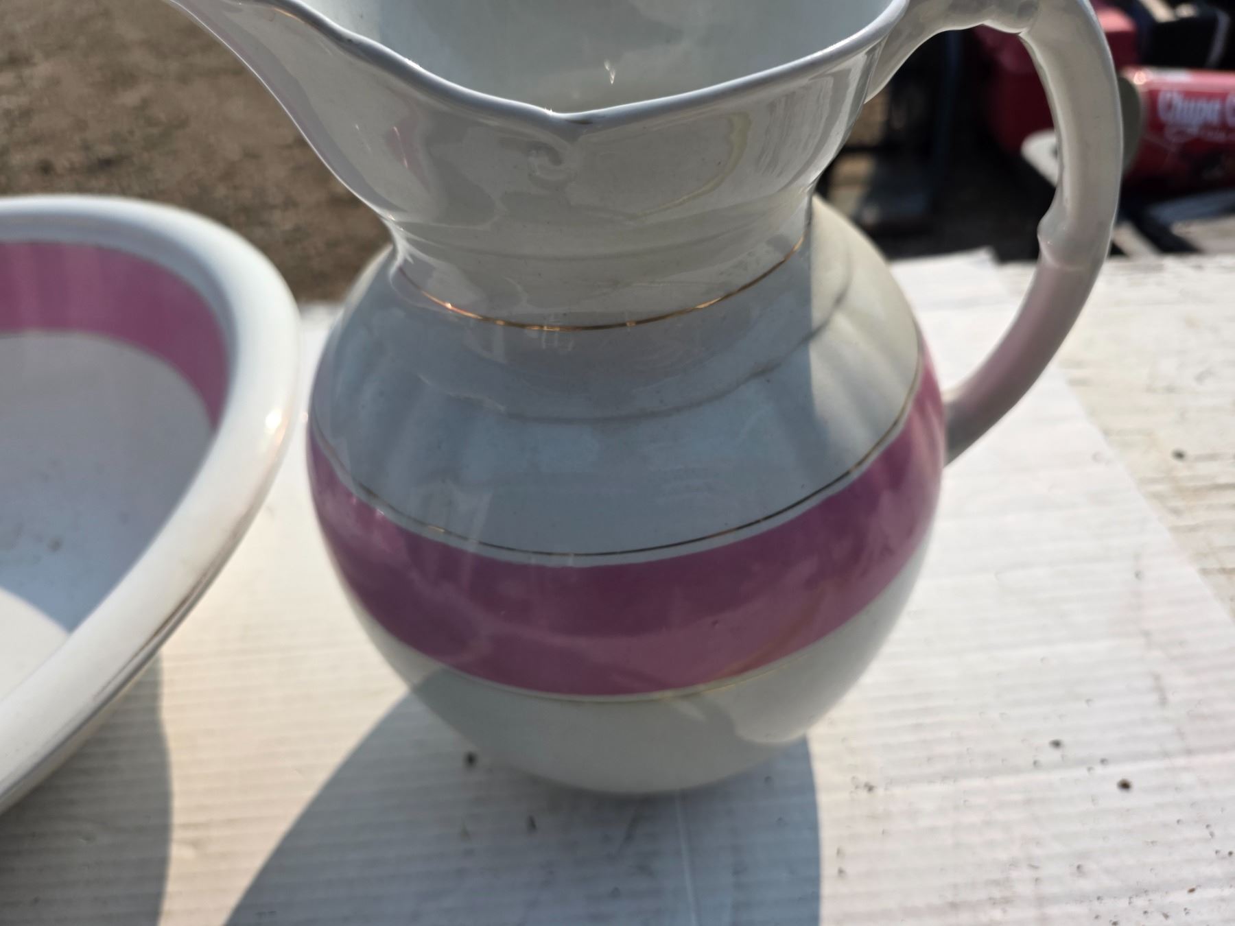 Wash basin set with pink stripe
