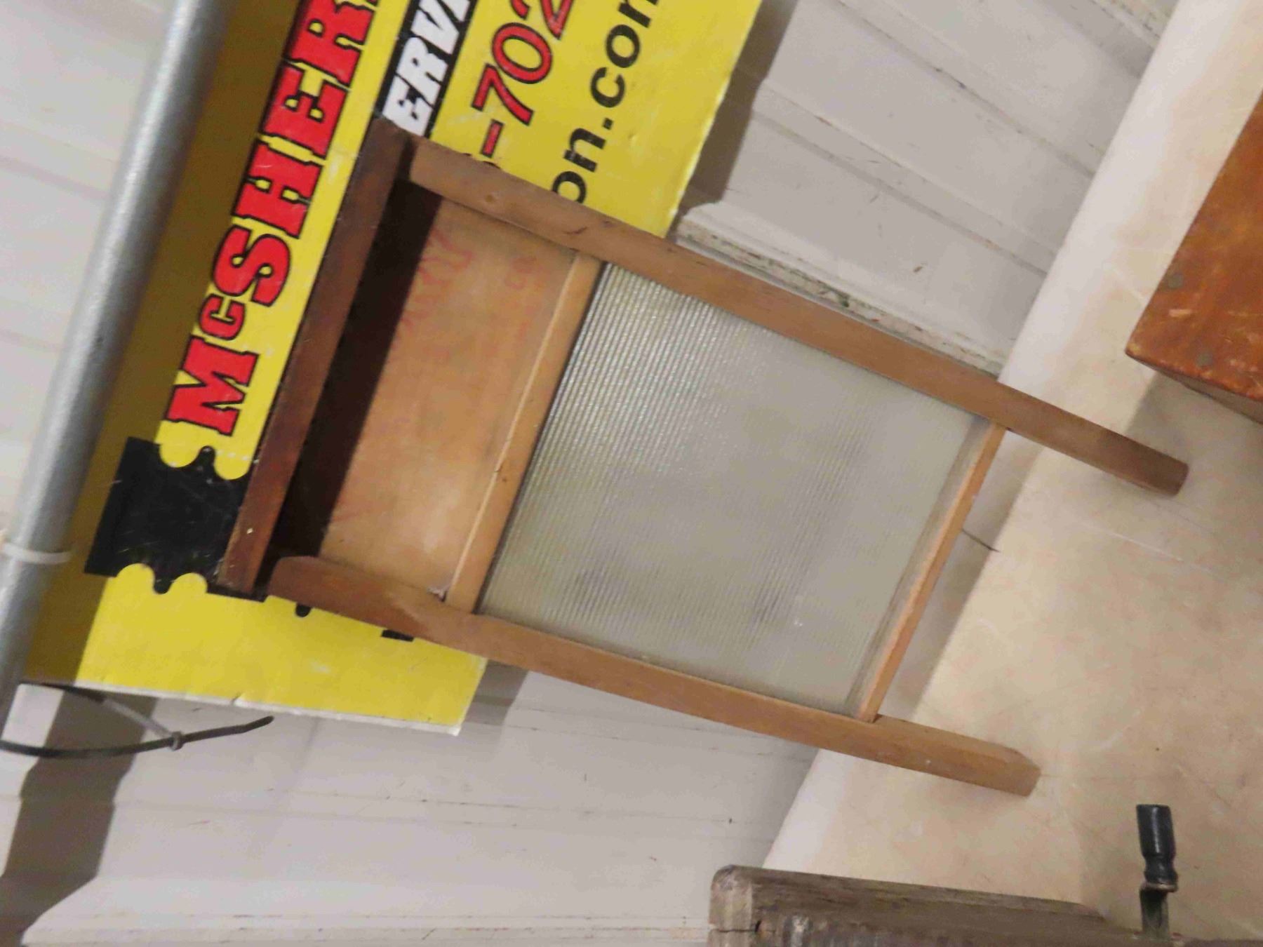 Washboard , Wood Telephone Ringer Box, Microscope/Survey Transit Box, Light Fixture