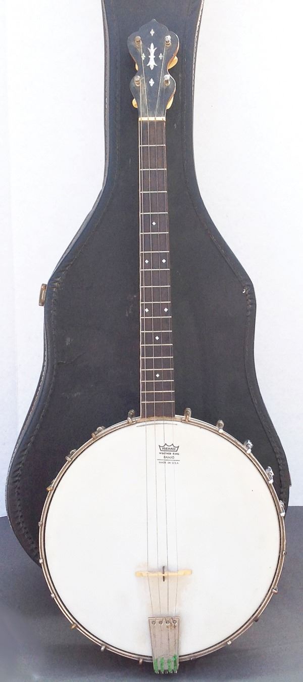 Ca. 1915 29-1/2" Rare, early, George Washburn "Improved Model" four-string tenor banjo with 11" body and 18-1/2" neck S/N 1726 (1915). Good playable condition. Comes with gig bag.