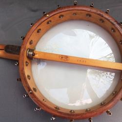 Rare, early, George Washburn "Improved Model" four-string tenor banjo with 11" body, and 18-1/2" neck. S/N 1726 (1915). Good playable condition. Comes with guitar case. Ca. 1915. 30"